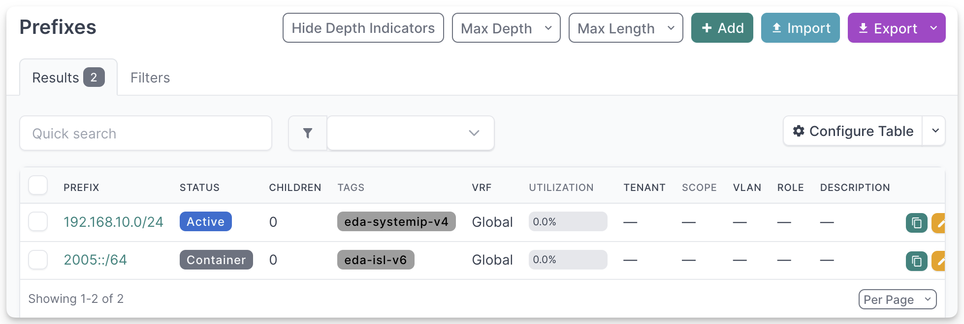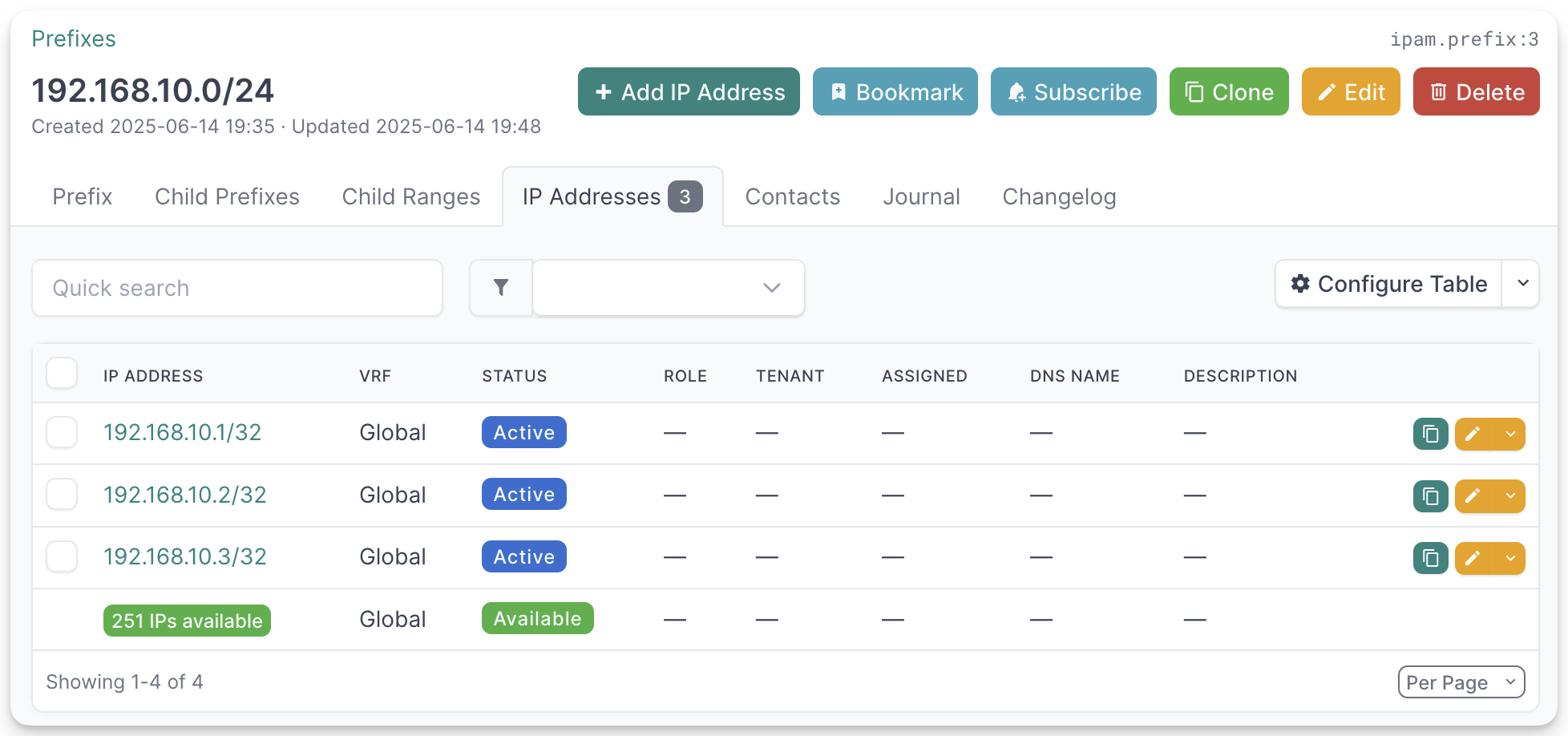 IPAM > IP AddressIPAM > Prefix