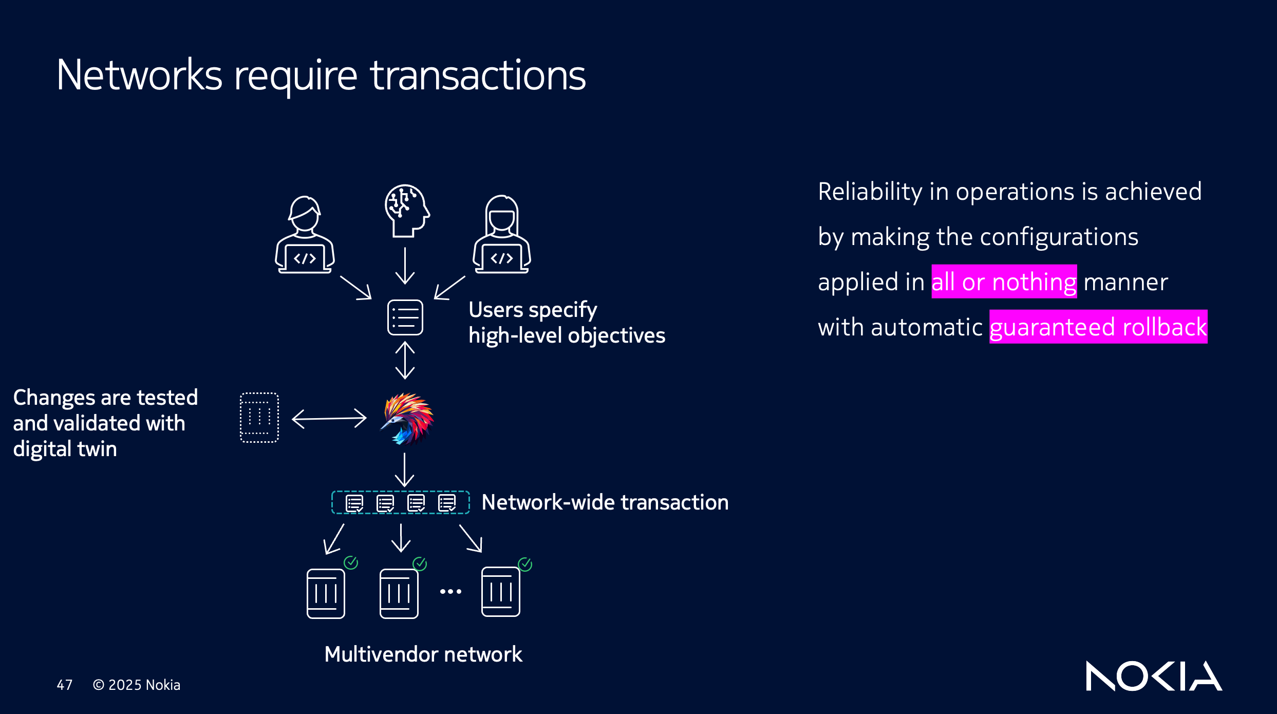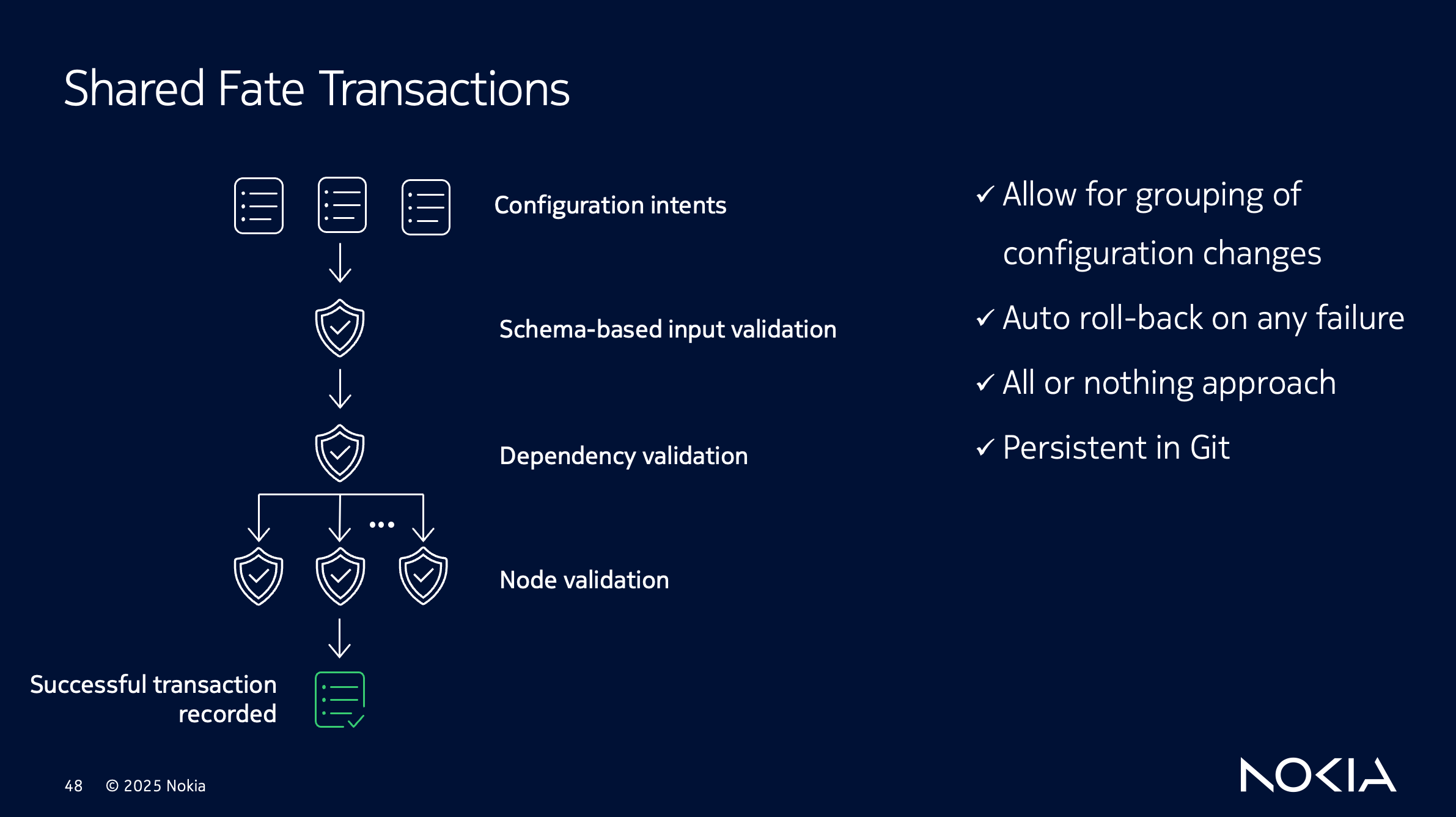 In the network world, partially applied changes may lead to service outages, security vulnerabilities, and compliance violations. Therefore, network operators need stronger guarantees that either all changes are applied successfully, or none of them are applied at all. This is where EDA's Network-wide Transactions come into play.