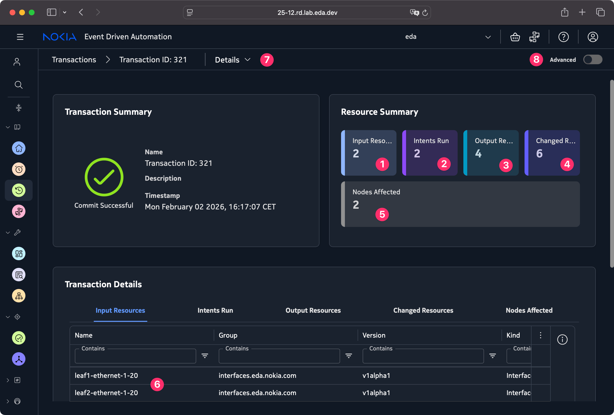 8 The "advanced" toggle will show additional internal resources participating in this transaction if available.