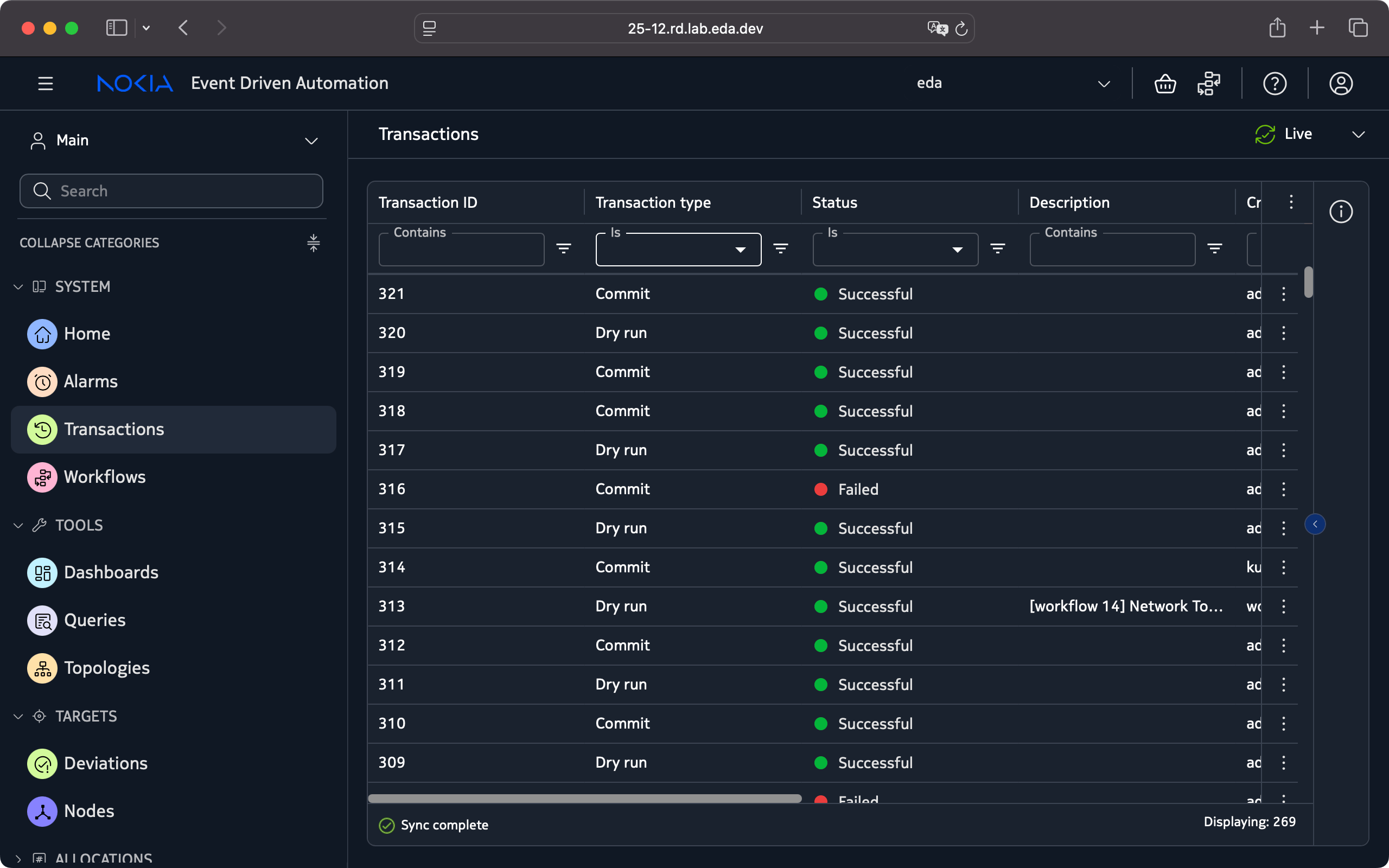 Attentive readers will notice that the transaction list contains both the transactions that were run in the dry run mode as well as the committed ones. Also both successful and failed transactions are listed here for audit and troubleshooting purposes.